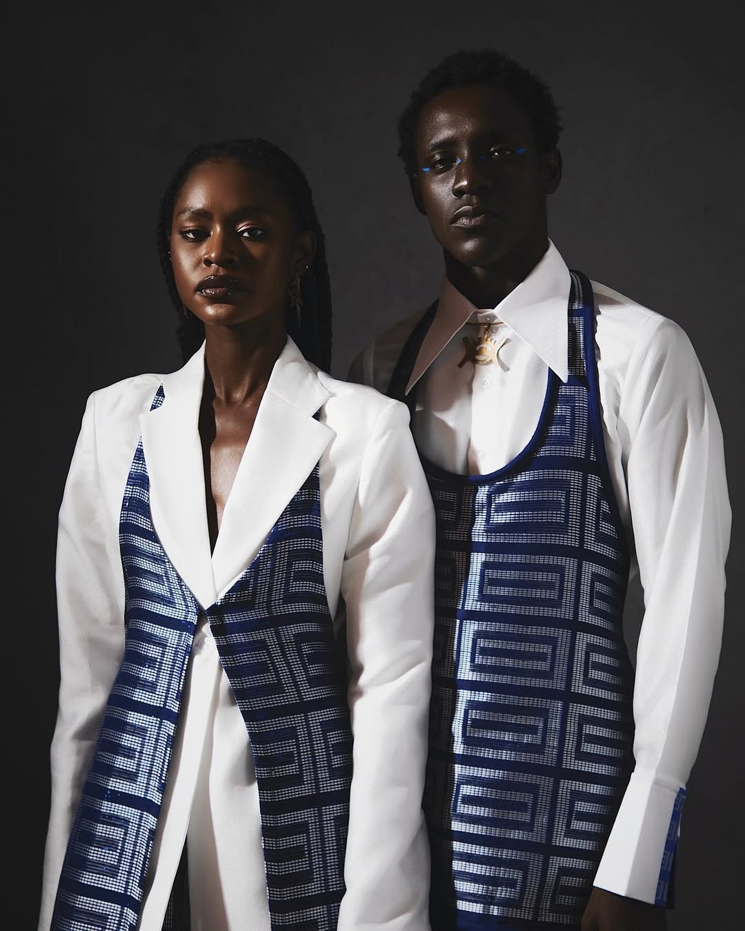 Today, the revival is loud — through art, music, and fashion. Designers like Laduma Ngxokolo weave Xhosa patterns and words into knitwear that speak identity without translation. Loza Maléombho bends tradition and futurism, naming each piece in Bété or French — both voices present, both proud. Yinka Shonibare plays with text and textile, turning postcolonial language into visual protest. Our artists are reclaiming what the classroom once made us hide.