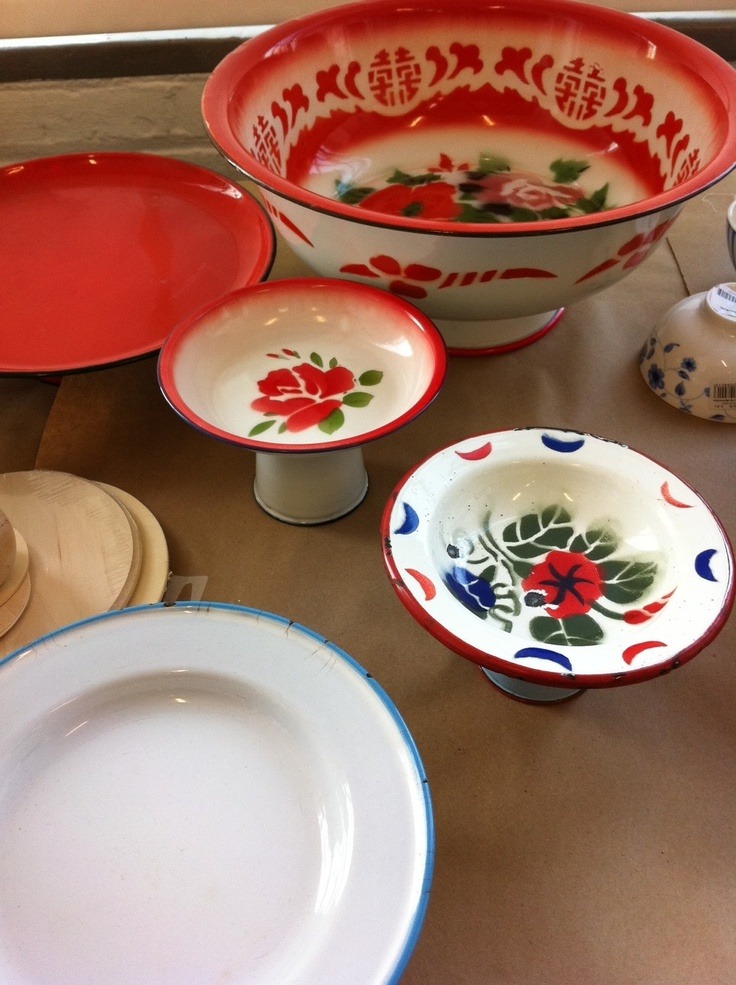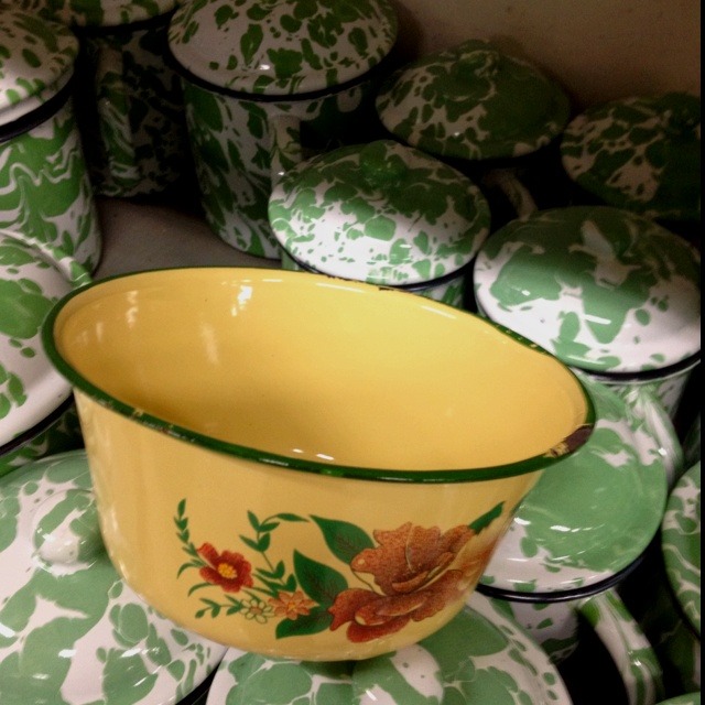 Enamelware starts with thin steel sheets. Artisans cut and press the sheets into the shape of bowls or plates. The edges are trimmed and curled for strength, because enamel needs a sturdy frame to cling to.