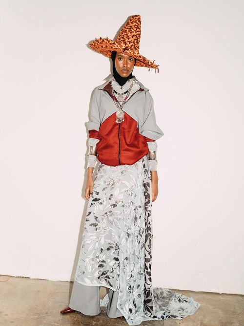 The set makes this clear before the clothes even arrive. A mural and nostalgic space that reminds you of unfamiliarity and the task of adapting, anchoring the room in memory. Coker is not just staging a show; she is staging absence. She reminds us that grief is not separate from creation; it is often what shapes it.