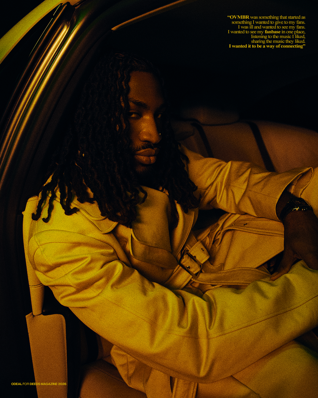 When Odeal arrives on set, it is a cold day in November in London. Despite the overcast weather, there is an energy throughout the day that brings excitement in the air. As someone who has had a fairly active year, he has a calmness that makes the 6-hour day run smoothly and painlessly. With various movements underway and people doing what needs to be done, he maintains an aura of readiness to do whatever is required. As we move through the day, he keeps the energy and vibe up until we wrap up for the dark evenings of a November night, showing his gratitude and appreciation for everyone on the team. Our conversation, which takes place a few weeks after the shoot, only echoes that vibe as we speak over Zoom. Having previously interviewed him around the release of his 2023 EP Thoughts I Never Said, this Odeal is on the move now, currently in Dubai. Yet as the conversations unfold, the essence of the artist I spoke to two years ago remains the same, even though he is in a different place in his life.