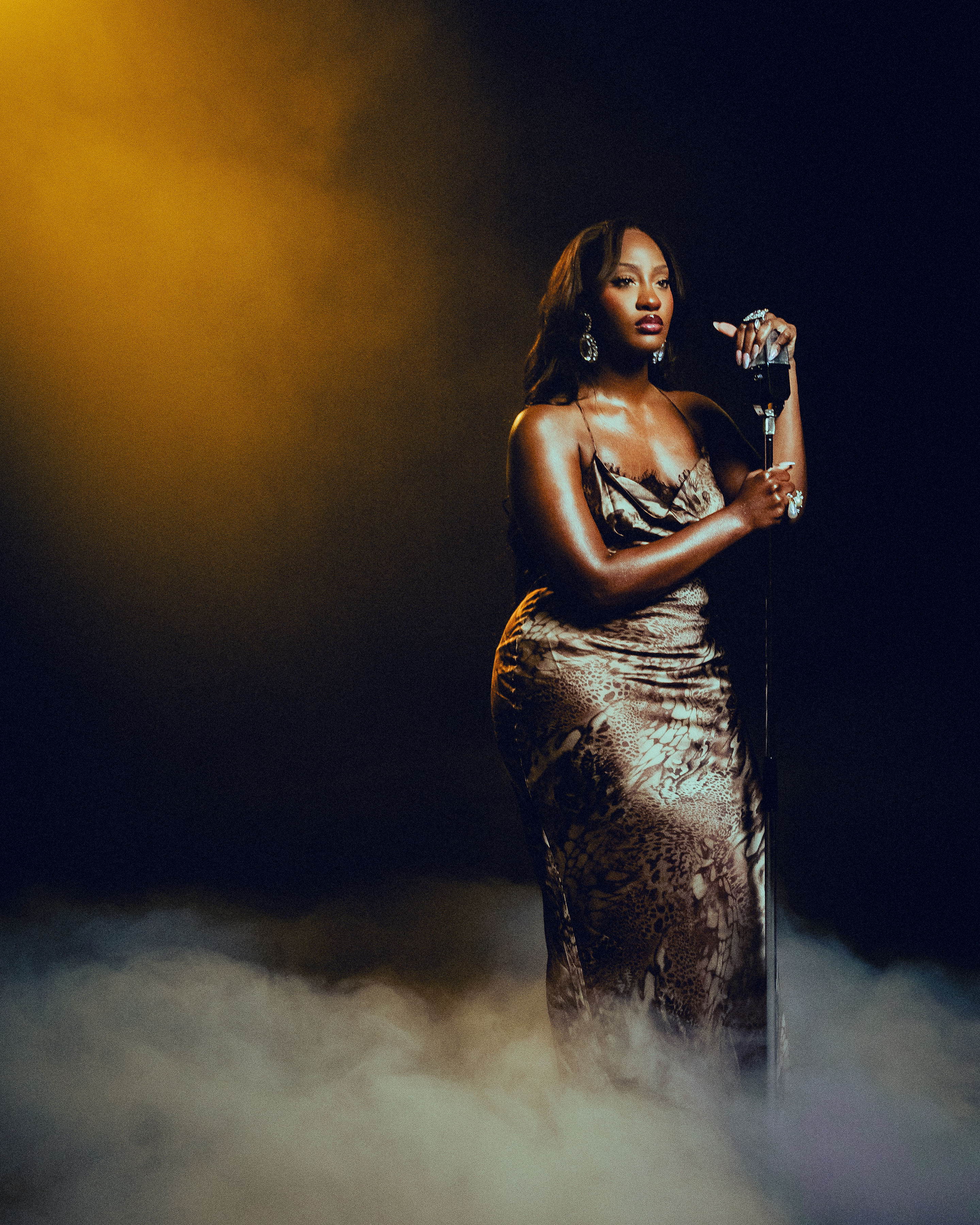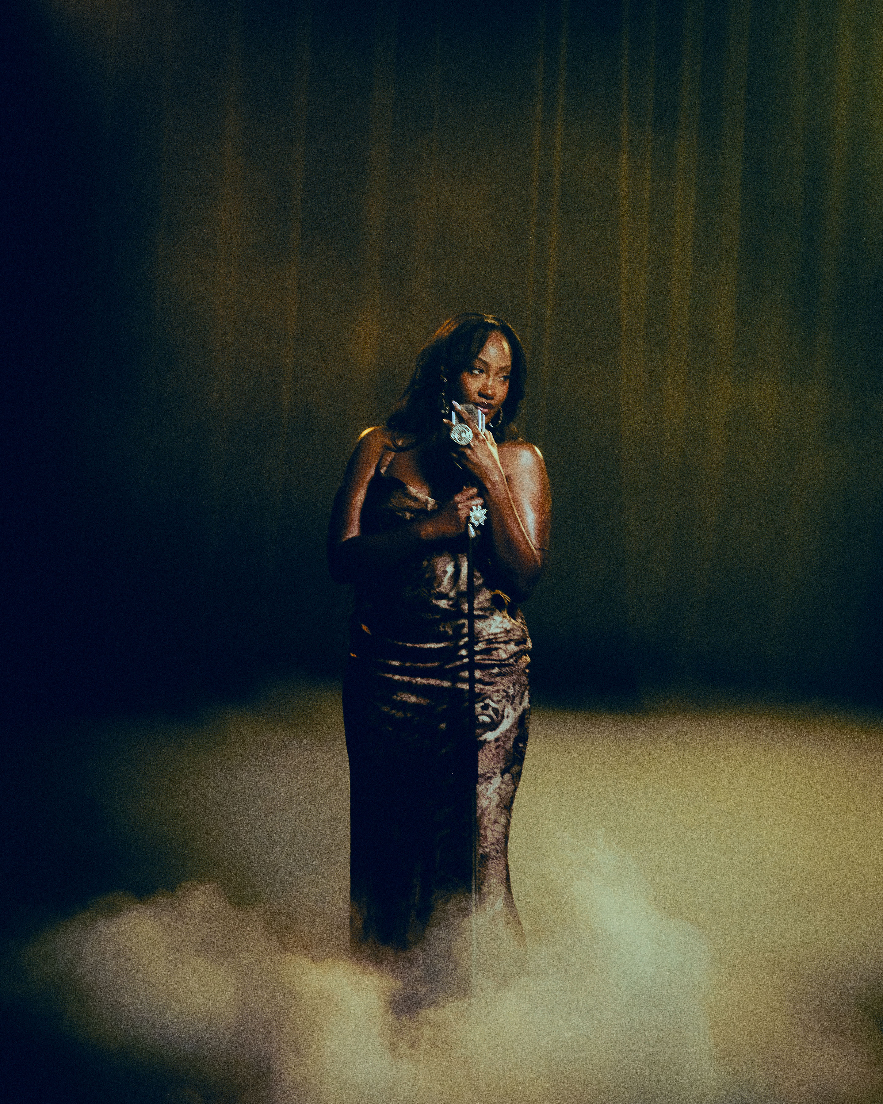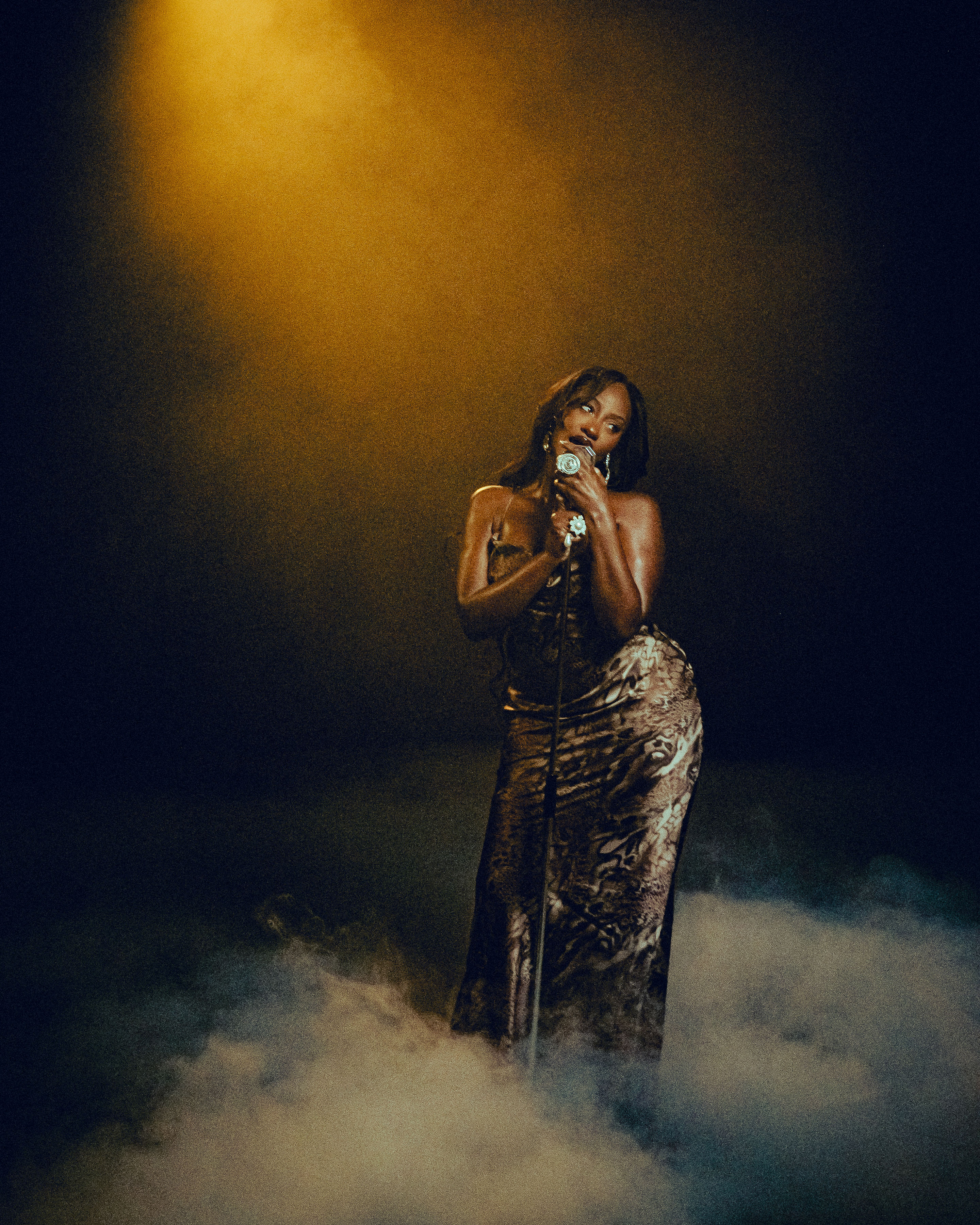 Her team of four photographers circles around her like planets orbiting a quiet sun. Tems seems both at peace and a little tired, locked into that deep creative zone that only artists know. As a low fog sweeps across the scene, pooling at her feet while she stands rooted in the spotlight, regal and magnetic.