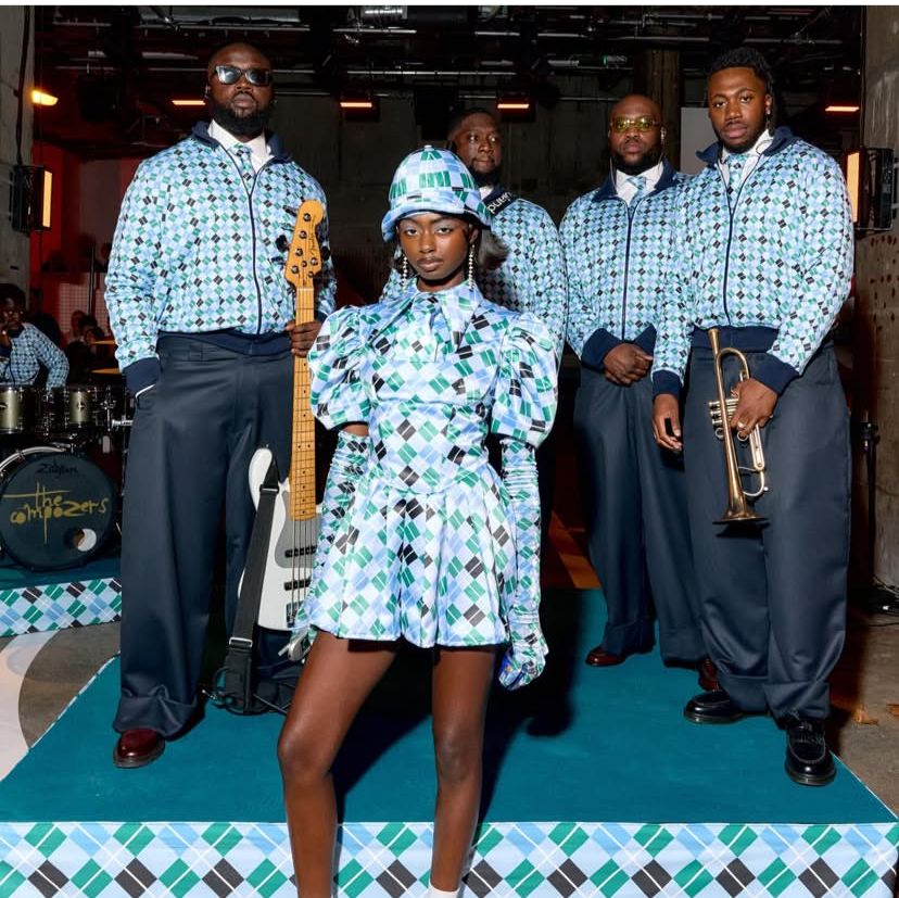 The clothes take centre stage here. Yoruba and British fashion codes collide deliberately. Structured tailoring meets cultural patterning, creating something that feels distinctly Afro-modern. “Reclaimed satins merge the vibrancy of Yoruba textiles with the tradition of British tartans. The palette, juxtaposed against the sharpness of the silhouettes, narrates a tale of migrating cultures and the contributions of the African and Black Diaspora to the makeup of Britain”- Tolu Coker.