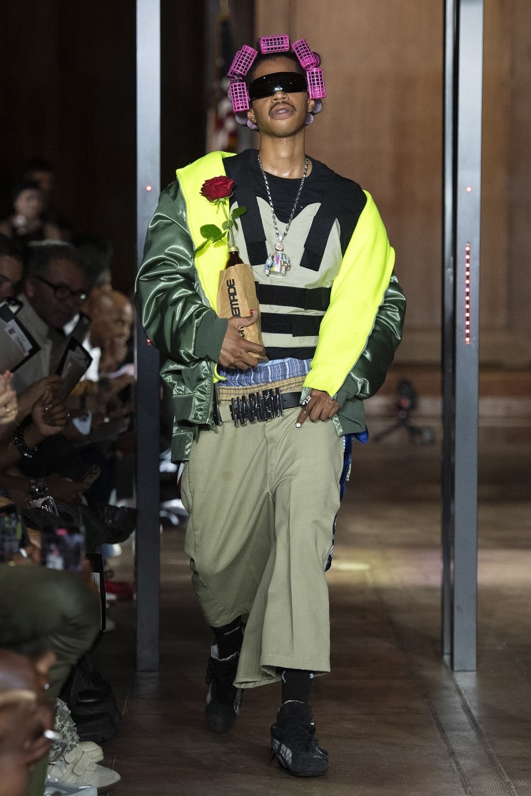 AWGE’s SS26 outing landed in Paris as a knowing exercise in disorder. Titled Obligatory Clothing, A$AP Rocky turned the runway into an American courtroom, complete with metal detectors, using the setting to interrogate how uniforms and dress codes police identity. Streetwear collided with suiting and institutional dress: clashing plaids, graphic motifs of restraint, jeans with stacked waistlines, and tailoring disrupted by bandanas and oddball accessories. The mood was intentionally unsteady, part satire, part provocation, with “Not Guilty” stamped across select looks.Â