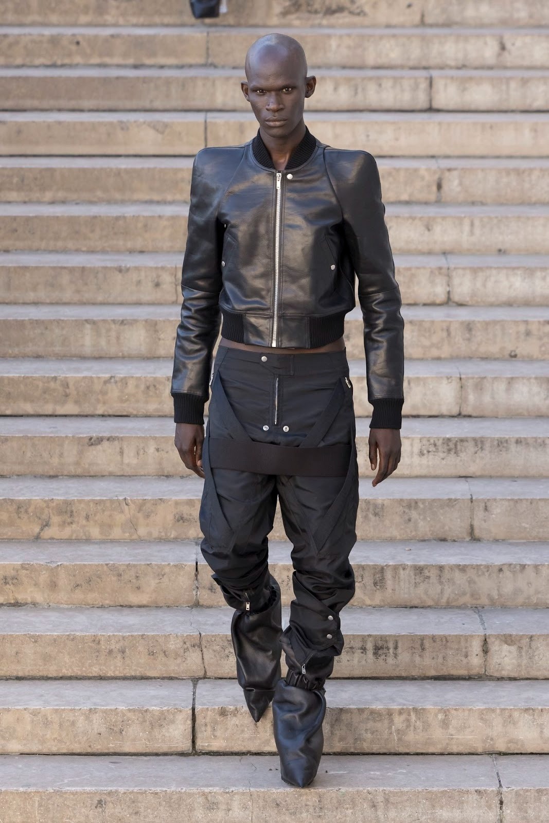 Rick Owens’ SS26 menswear, Temple, unfolded as a water-drenched ritual at the Palais de Tokyo, raw and unflinching. Timed with his retrospective at the Palais Galliera, the show distilled his ethos into “tough clothes for tough times,” pulling from the fetishwear and street economies of early ’90s Hollywood while balancing brutality with moments of fragile beauty.