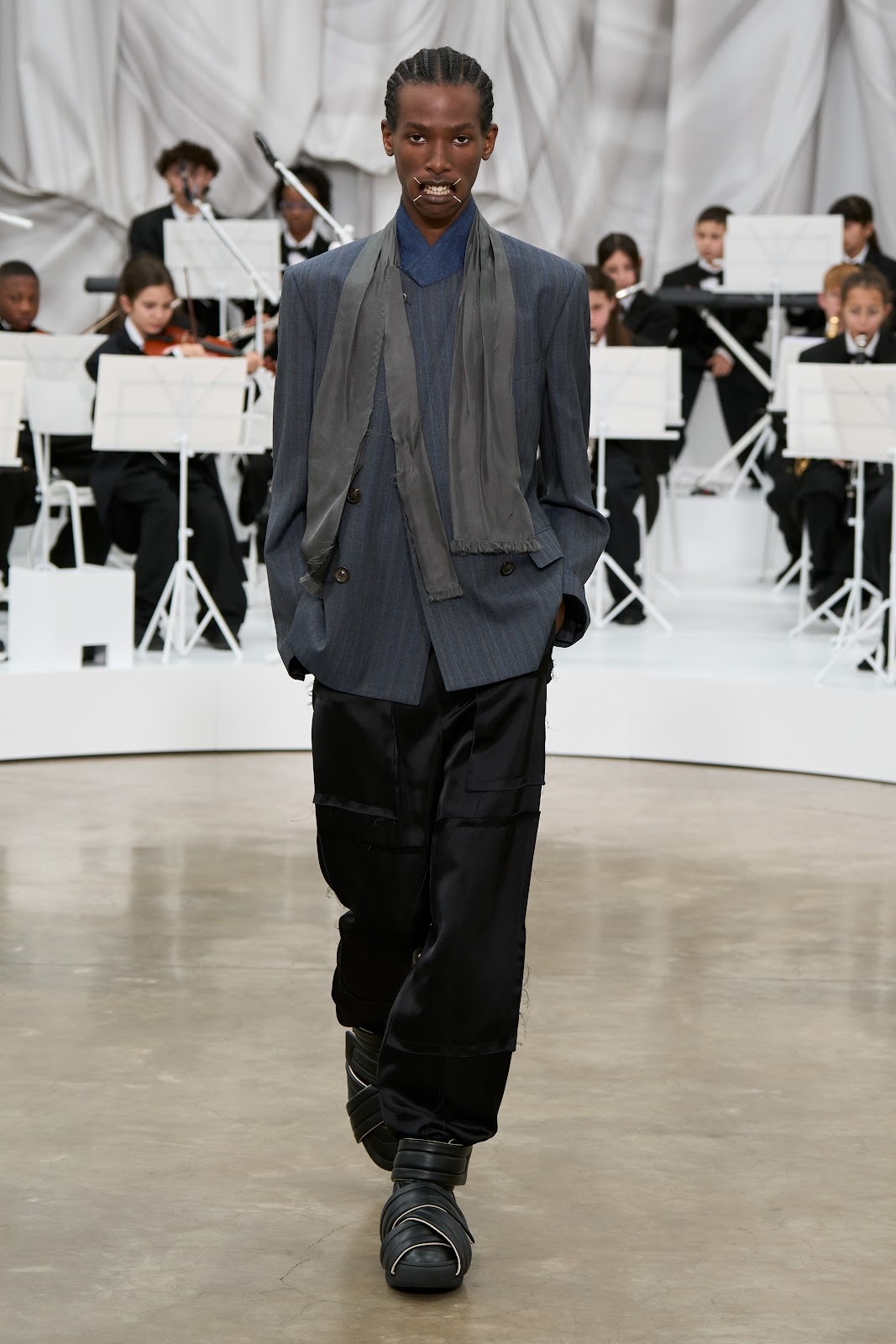 Comme des Garçons Homme Plus returned last season with a proposition.Titled Not Suits, But Suits, Rei Kawakubo dismantled tailoring as we know it through their SS26 collection, inflating jackets into sculptural forms, splitting seams with zips that exposed ruffles beneath, and stacking layers until the suit became rather ritualistic. Muted greys and blacks were paired with metallic flashes and geometric interruptions, while braided wigs and oversized headwear pushed the looks into near-mythic territory.