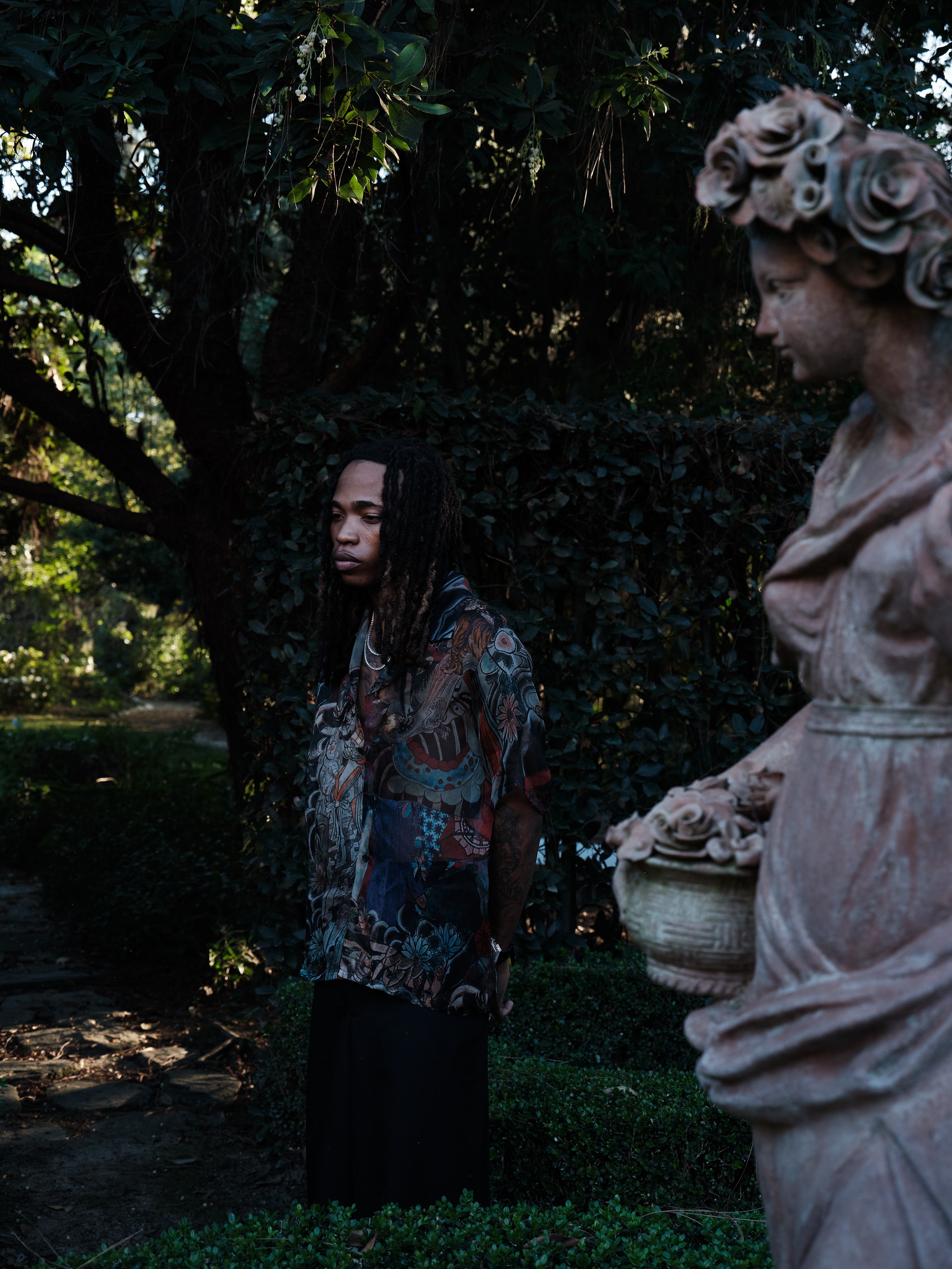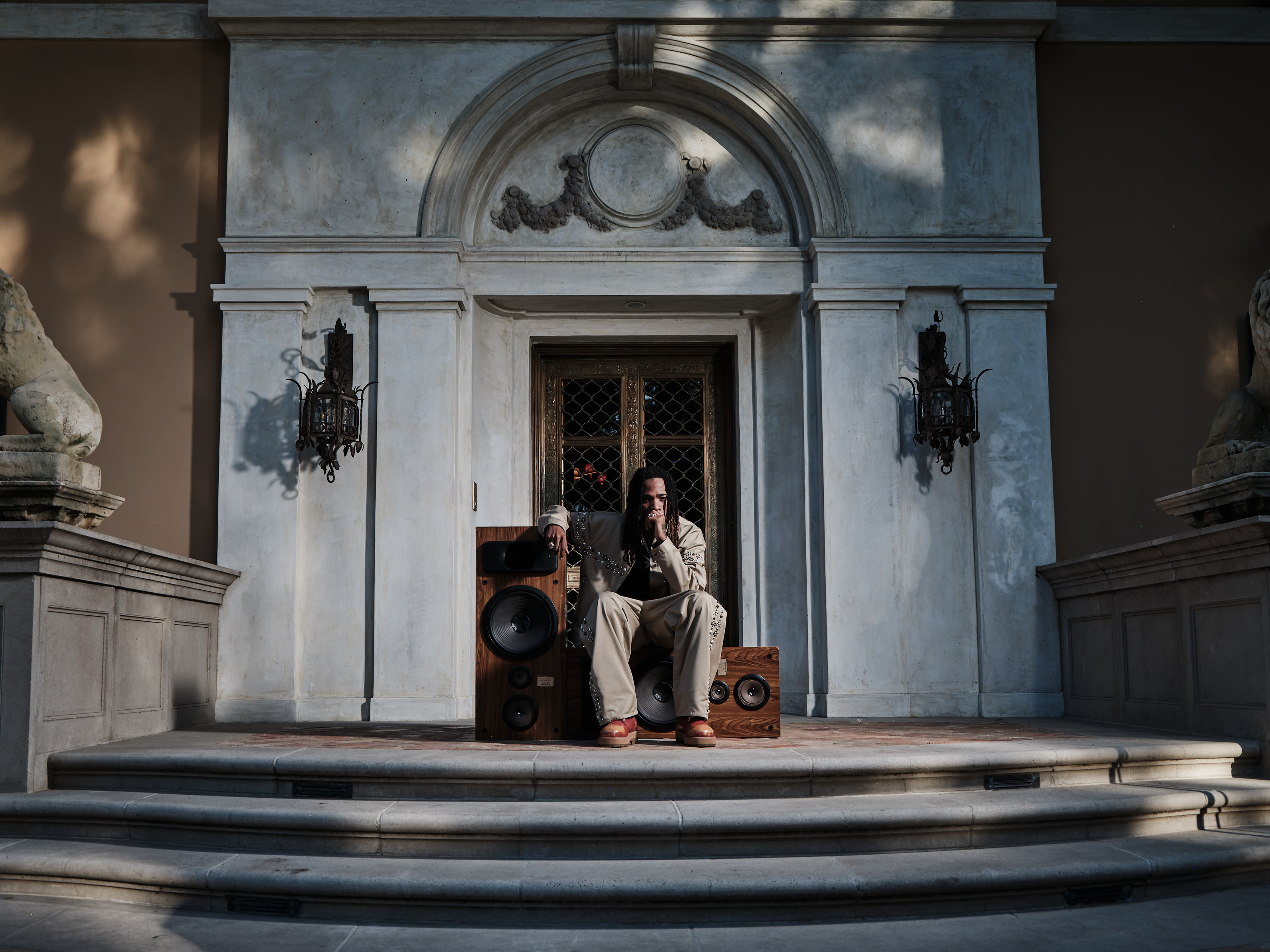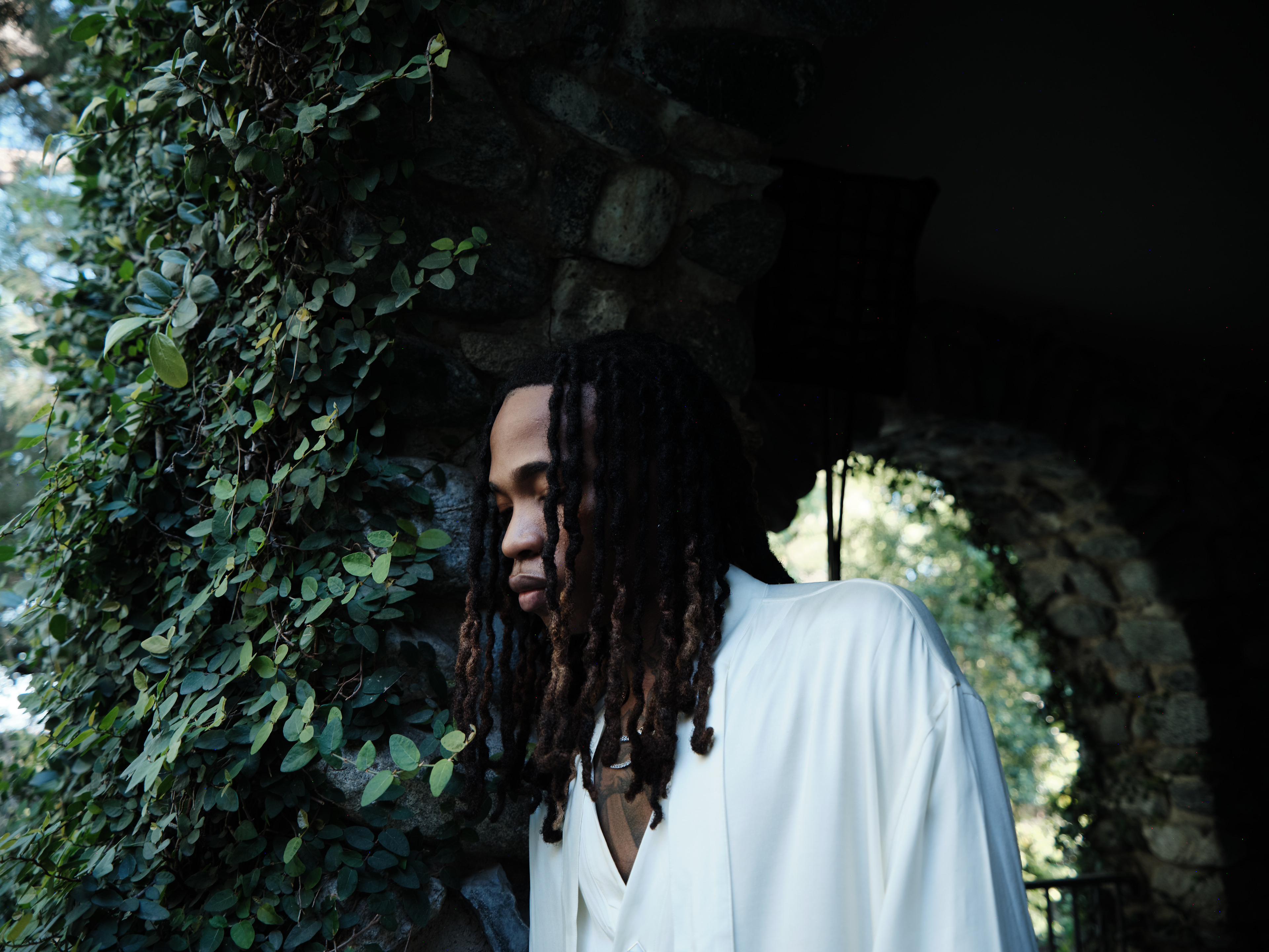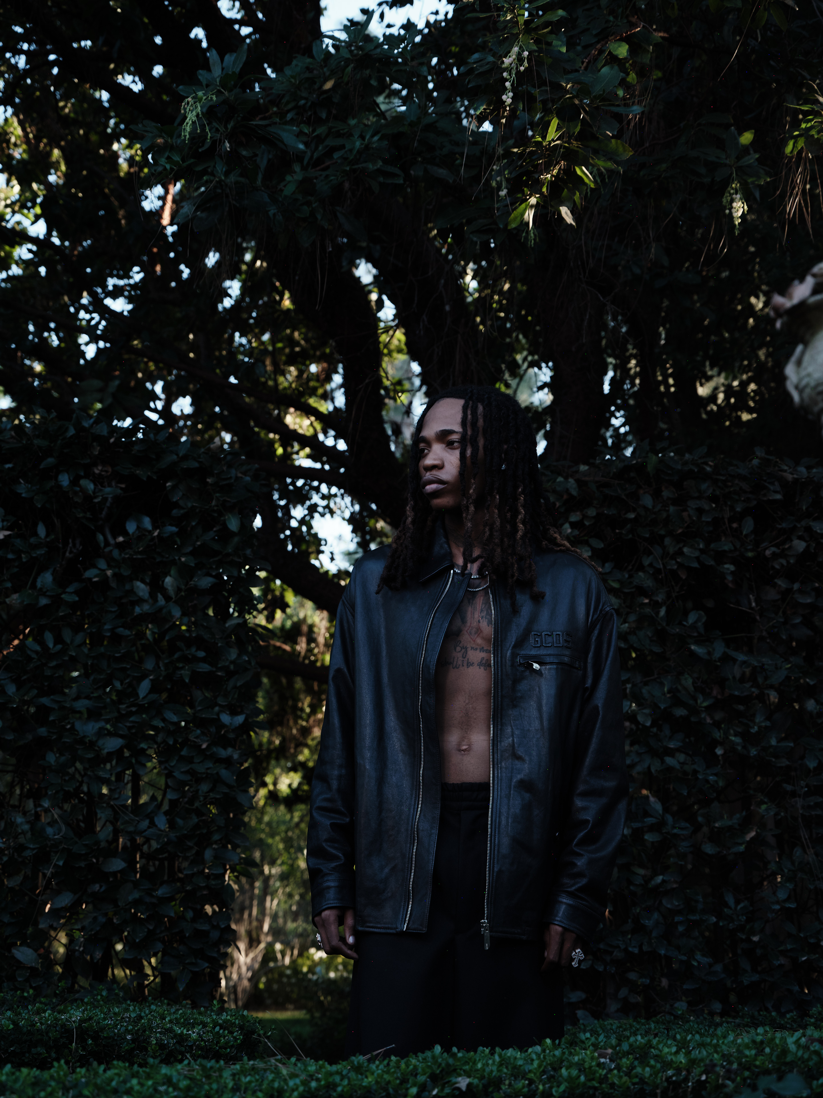Tucked away in Pasadena is a retreat that feels completely disconnected from the city’s high-speed energy. Behind the gates of a massive modern estate, the Hollywood noise trades off for the stillness of a lush, green hideaway. We took full advantage of the beautiful garden location; the hidden trees and secluded corners felt like a genuine oasis. The architecture is sharp, the vibe is serene, and the atmosphere feels effortlessly tropical. This isn't just a high-end backdrop; it’s a reflection of the man himself. During the shoot, Armanii was locked in, showing a level of creative involvement that most artists find years into their careers. He moved with a quiet yet humble confidence, clearly understanding his angles and exactly what he liked. At times, he even gently guided the photographer to the specific perspectives that looked the best, never losing that grounded spirit. He genuinely loved the moodiness of the space and the touches of elegance that defined the day.