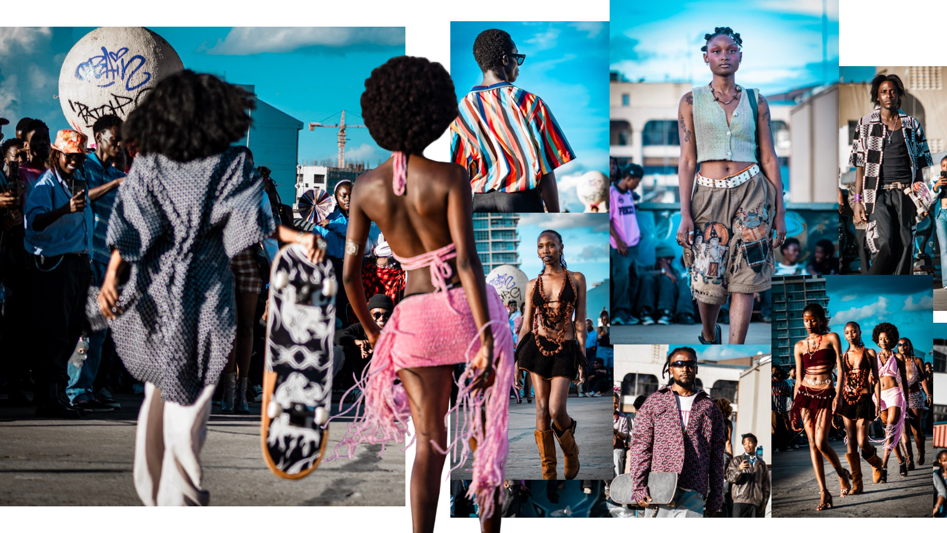 Most recently, in collaboration with the Skateboarding Society of Kenya (SSK), Members of the Earth and GirlSkate welcomed Zimbabwe’s Push Project to the 254, where an impromptu Skate and Sound found skaters as fashion designers and models. Unlike other skate jams hosted by the community, the views and music from the DJ gave way to a runway show of Nairobi-based and Zimbabwean designers spearheading a creative crusade.