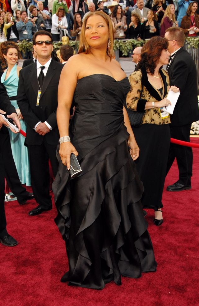 Queen Latifah was nominated for Best Supporting Actress for Chicago earlier in the decade and by 2006 had become a regular presence at major ceremonies. In 2006, her black Carmen Marc Valvo dress leaned into classic and simple Hollywood glamour that stood out, especially at a moment when many celebrities experimented with embellishment and colour on the Oscars carpet.